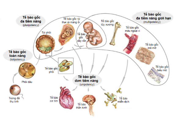 Hình 1. Tiềm năng biệt hóa của tế bào gốc