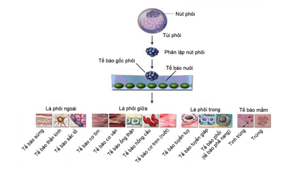Hình 3. Tế bào gốc phôi có khả năng biệt hóa thành tất cả các loại tế bào trong cơ thể