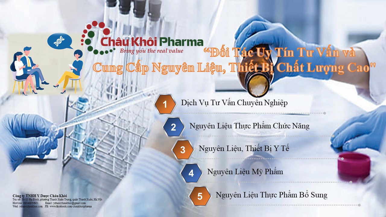 Châu Khôi Pharma - Đối tác đáng tin cậy, mang lại nguồn nguyên liệu chất lượng và sự hỗ trợ tư vấn chuyên nghiệp cho sự phát triển bền vững của doanh nghiệp trong ngành công nghiệp y tế và thực phẩm bổ sung.
