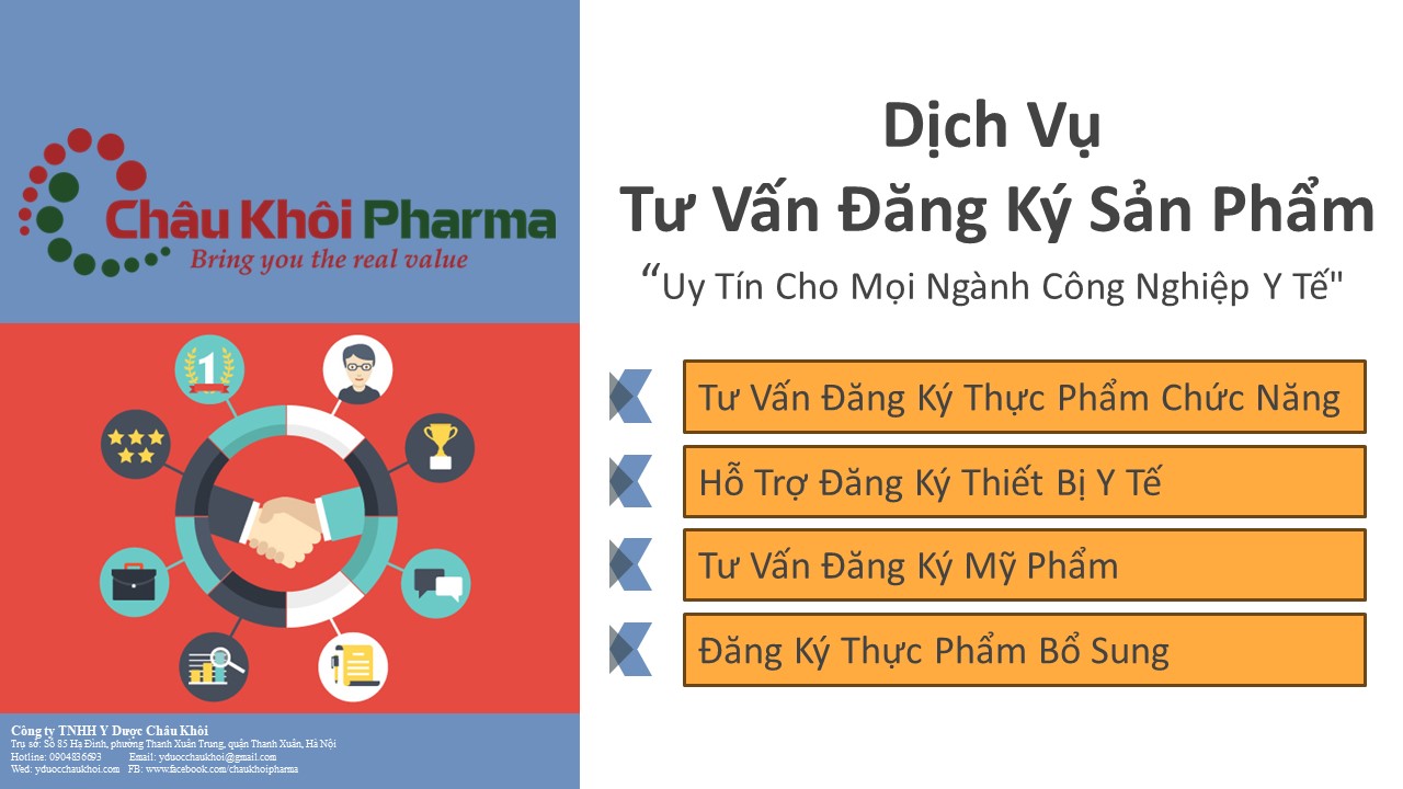 - Tư Vấn Đăng Ký Thực Phẩm Chức Năng: Châu Khôi Pharma có đội ngũ chuyên gia pháp lý và chuyên gia ngành y tế giúp đỡ trong việc đăng ký thực phẩm chức năng. Chúng tôi cung cấp sự tư vấn sâu rộng về quy trình đăng ký, tiêu chuẩn ngành, và cung cấp các chiến lược để đạt được sự chấp thuận một cách nhanh chóng và hiệu quả.
